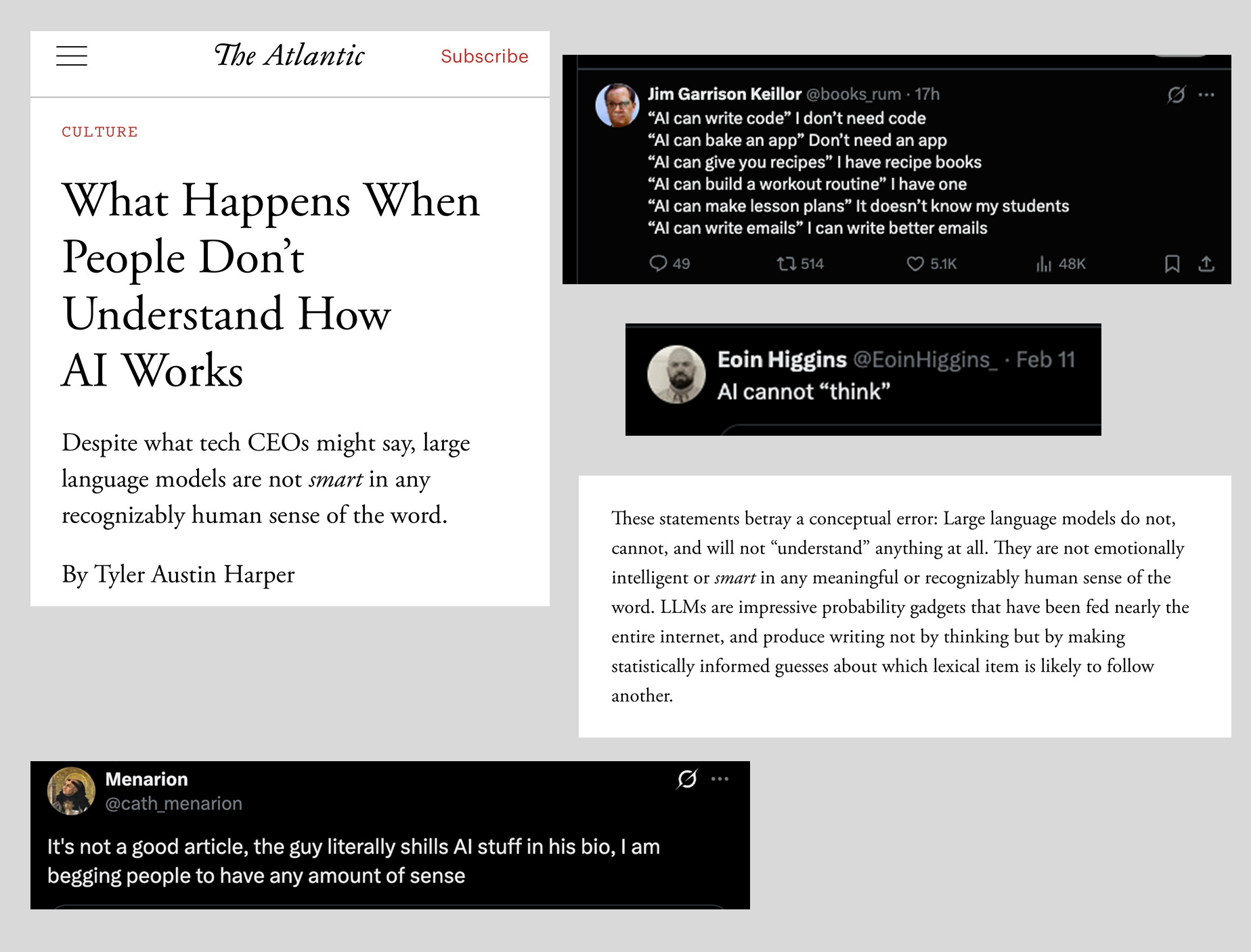 Reactions to his piece were polarized. On one side were people who have actually used the tools he writes about and broadly shared his sentiment. On the other side, critics who haven’t used the tools decried the piece as propaganda from the AI industry to hype up its vaporware that amounts to little more than a novel form of Google search. Rather than engage with Shumer’s claims, these critics would denounce AI as “not actually reasoning” or “fundamentally incapable of producing something new.”